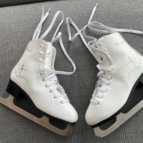 Trex danse skøyter i størrelse 36 for barn. Skøytene er hvite og har tradisjonell snøring.