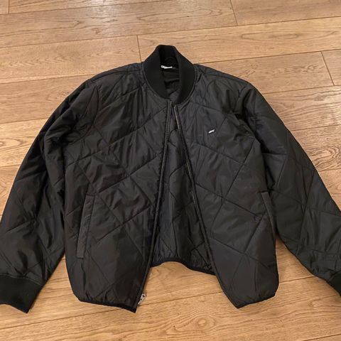 Selger en svart OBEY pufferjakke i størrelse L. Varm, komfortabel og perfekt til høst og vinter. Clean og minimalistisk design med OBEY-logo på brystet.