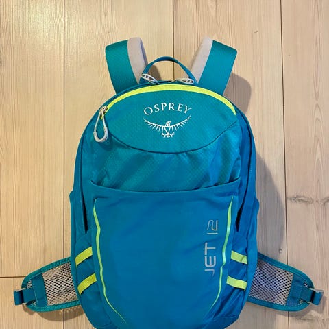 Osprey Jet 18 liter junior ryggsekk i blå farge. Ryggsekken har justerbare skulderstropper og flere lommer for oppbevaring.