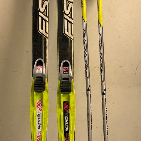 Fischer smøreski. Sålen er uskadet. Skade på toppen av den ene bakskien.