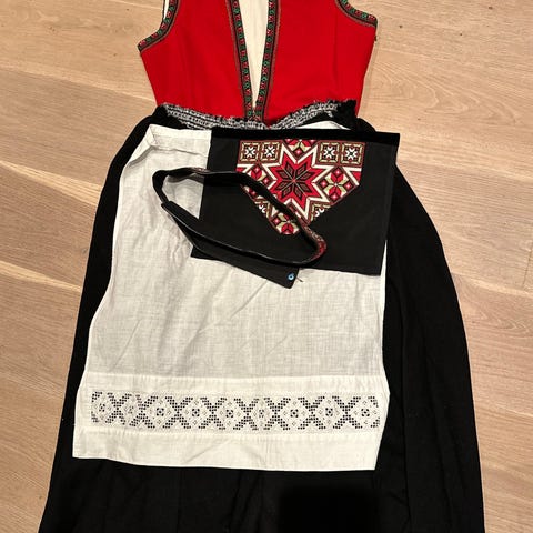 Vakkert Rosebånd på opplut / vest/ liv. Tilvirket med rød ull og fòret med bomull.