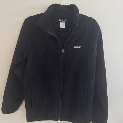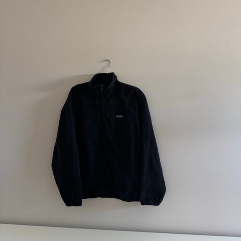 Patagonia fleecejakke for herre i størrelse M. Jakken har hel glidelås og er svart i fargen. Passer til bruk som ytterplagg eller mellomlag ved kaldt vær.