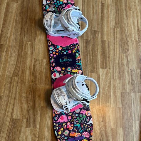 Kult Burton chicklet snowboard. Brettet er i veldig god stand men baddene under bindingene (den ene) har fliser litt og de er litt limt da se har løsnet noe. Ene bindingen har en sprekk bak, dette er ikke noe problem for selve kjøringen og kan ordnes med litt fantasi. Jeg velger å ikke gjøre det slik at evt kjøper gjør det ten synes er best.