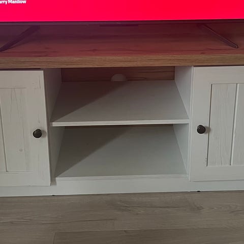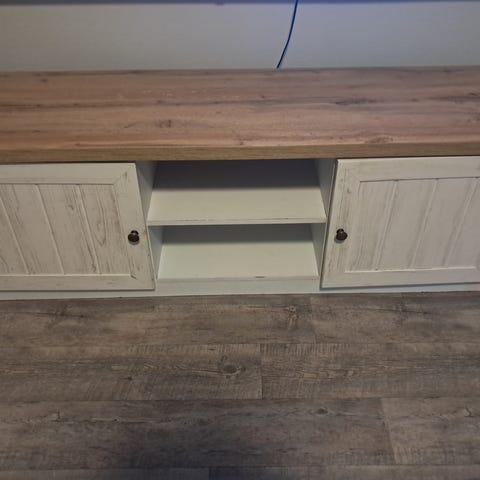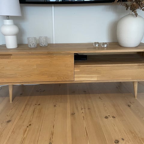 Selger pen TV-benk i eik/hvitmalt bjørk.