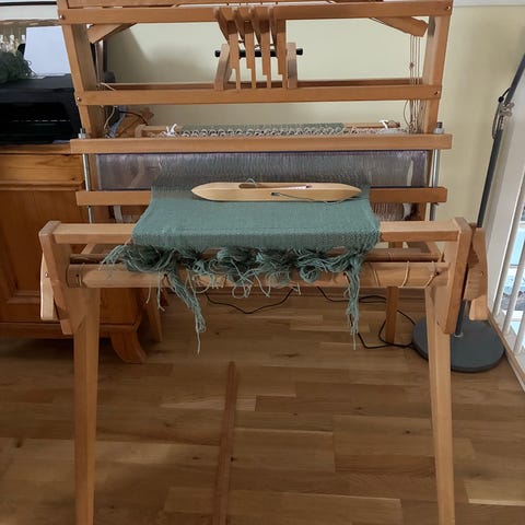 Garn til vev, fortsatt lappen på.