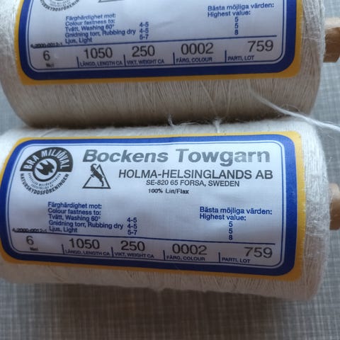 250 gram Bockens Lingarn 16/2, ca. 1380 m Halvbleket
