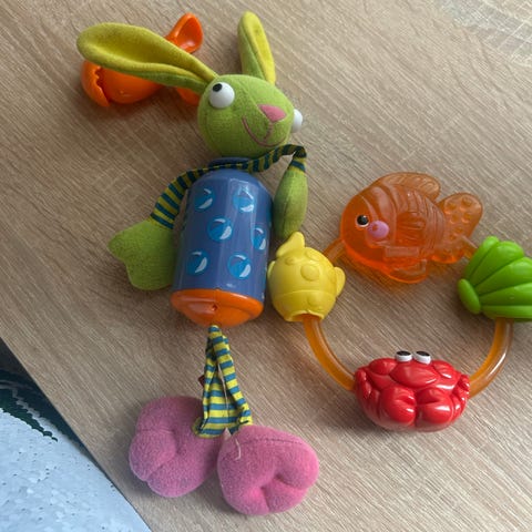 Liten og lett for den som nettop har begynt å grabbe og holde tak i ting. Måler ca 10×10cm.