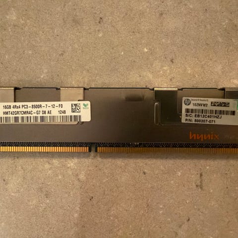 Selger to stk. SK hynix 16 GB DDR4 RDIMM ECC serverminne, totalt 32 GB.