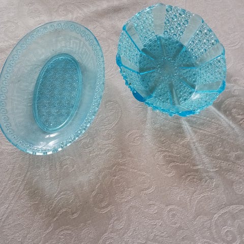 2 stk nydelige skåler i pressglass i samme serie. Hele og fine.