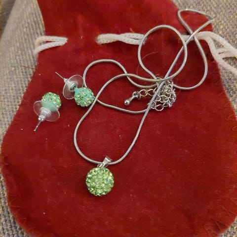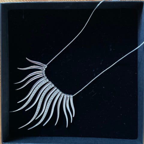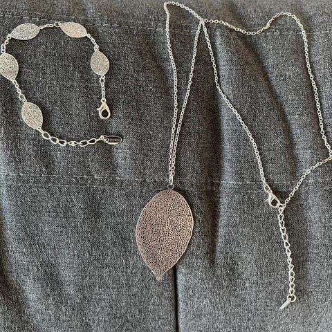 Selger et smykke og armbånd sammen. Sølvfarget i metall. Kan sende med post nord porto 69 eller fix ferdig