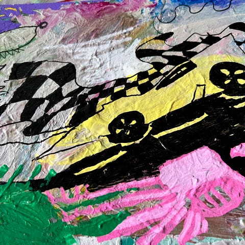 Abstrakt maleri rainbow Racing BørjeSumdbakken