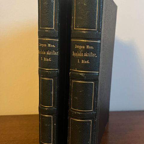 Selger Jørgen Moe – Samlede Skrifter, komplett i to bind, Hundredaars Udgave utgitt rundt 1913.