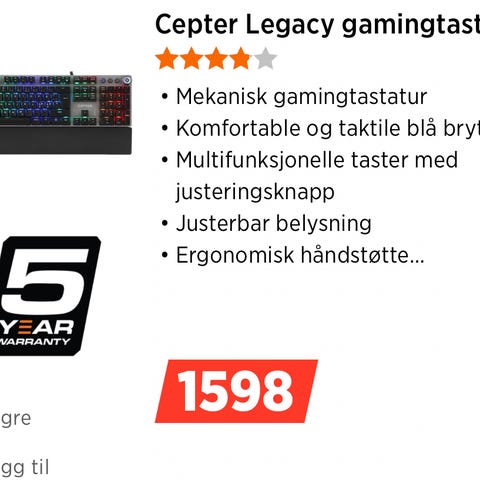 Pent brukt Cepter gamingtastatur selges.