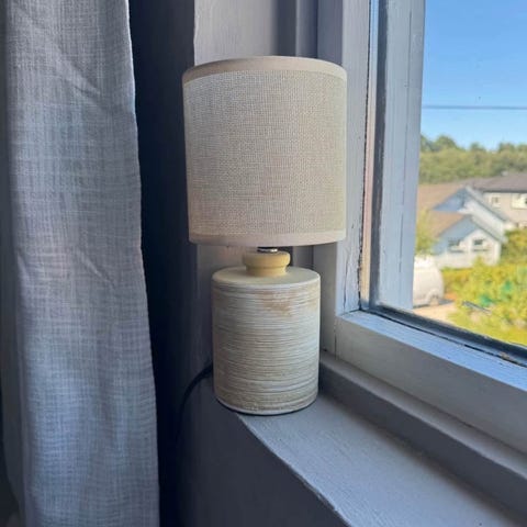 Stilig bordlampe i hvit stoff fra Kid