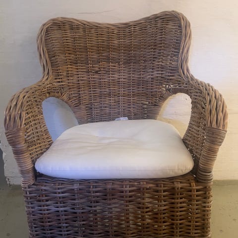 Pen og behagelig stol, antar stoffet er fløyel.