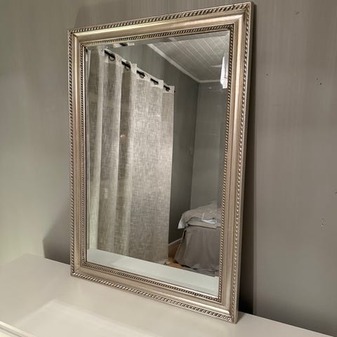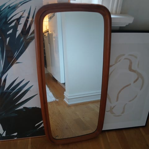 Antikk gullspeil. Speilet har en nydelig dekorativ ramme, men bærer preg av at det er vintage.