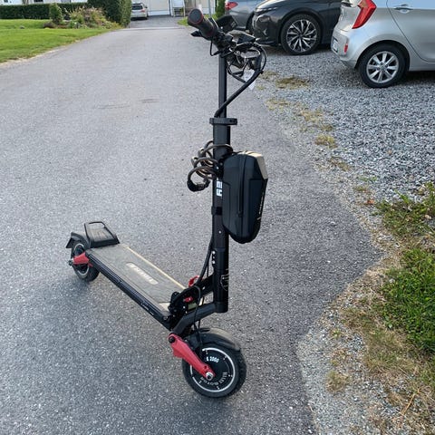 Sparkesykkelen er ca. 1 år gammel og har hatt 2 eiere. Den har kun gått ca. 350 km, så motor, batteri og ramme er lite brukt. Den har ikke blitt brukt på rundt 2 måneder, og har stått ute under tak hele denne perioden.