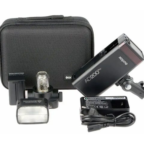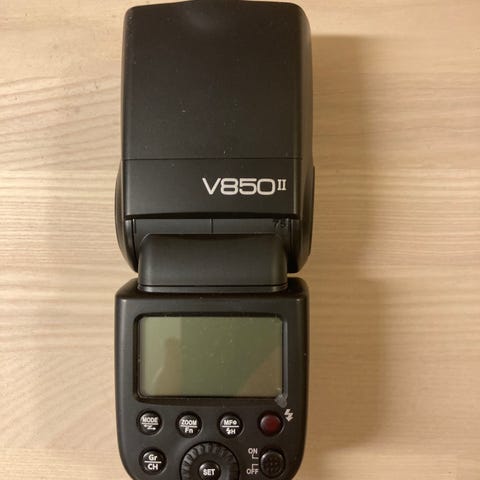 Godox TT350C med tilhørende utstyr.