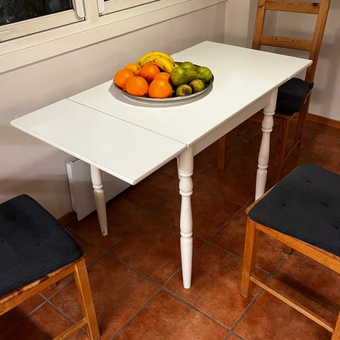 Kjøkkenbord med oppslåtte klaffer