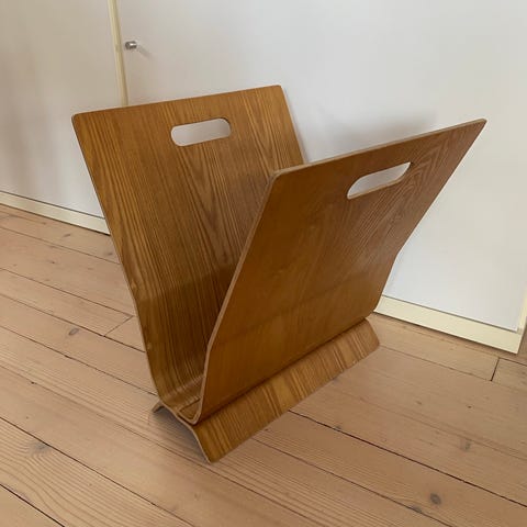 Magasinholder laget i tre med to håndtak for enkel bæring. Designet for oppbevaring av magasiner eller aviser, med en V-form som gir god stabilitet og oversikt. Naturlig treutførelse som passer til ulike interiørstiler.