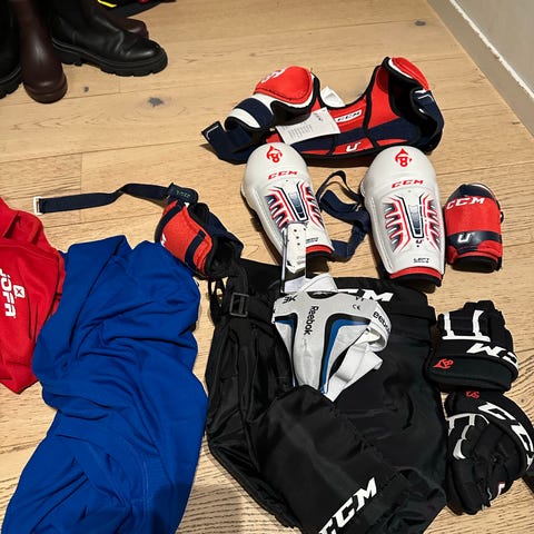 Sterterkit med det meste av det du trenger av beskyttelse for å begynne med ishockey.