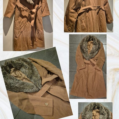 Selger pent brukt kåpe med pels rundt halsen og innvendig. Myk i stoffet og holder deg varm. Pelsen på armene kan også tas av. Kåpen er fra Zara. Kom med bud🤍 Kan hentes i Oslo eller sendes