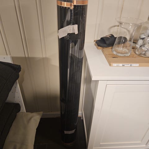 Ca 4,4 meter x 0.3 meter bredde. Nokså tykk