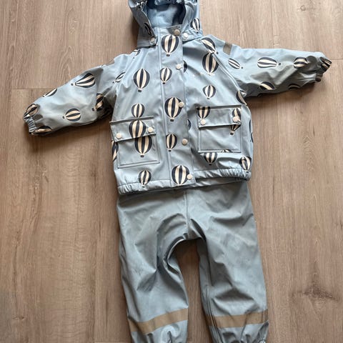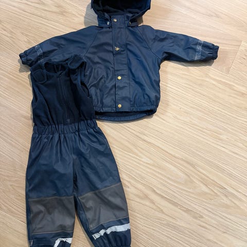 Kjempefint foret regntøy og to par votter, et par uforete regnvotter(Reflex) og et par vintervotter(Nordbjørn)