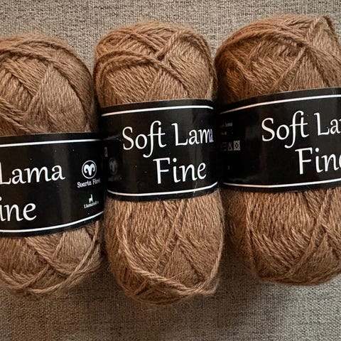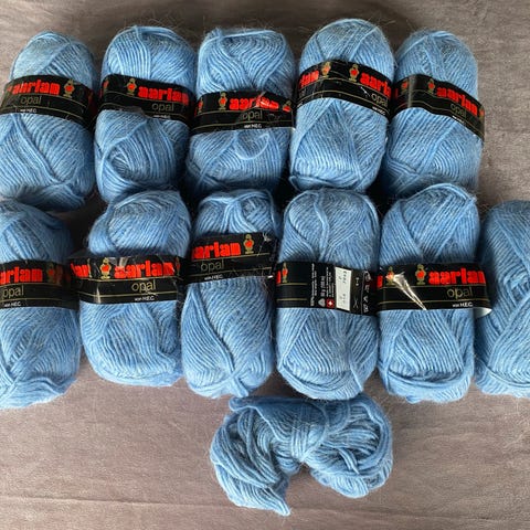 Eldre strikkegarn i ull, mørk brunt (340 g). Nøster av forskjellig størrelse. Ingen merking eller strikkefasthet oppgitt. Kommer fra arvebo. Har ligget vekkpakket i mange tiår. Mulig helt tilbake til 1960. Overtok det selv for ca. 20 år siden. Ikke åpnet og godt igjennom før i dag. Litt usikker, kan være opprekksgarn. Selges derfor billig.