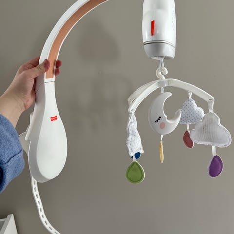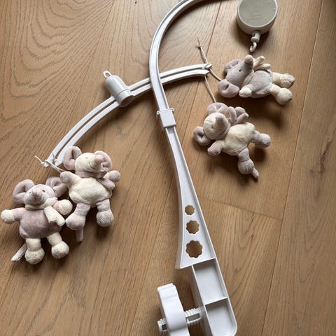 Med lys og forskjellige lyder og musikk. Kjøpt hos ekstraleker i desember 2024
