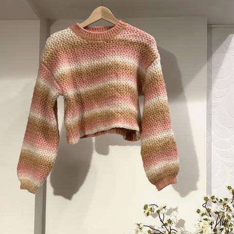 Supersøt strikkegenseren, kjøpt sommeren 2025. Veldig fin på, og passer det det meste av bukser, kjole og tilbehør.