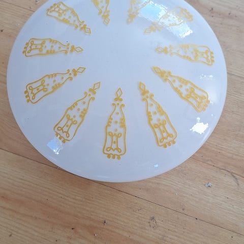 Taklampe med glass-skjerm selges rimelig.