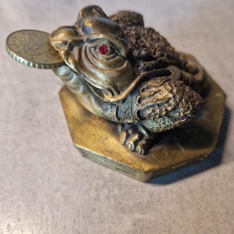 Skulptur i bronse med motiv av en figur. Skulpturen har en rektangulær form med avrundede kanter og viser detaljer i overflaten. Materialet er bronse, og objektet har en mørk patina. Ingen ytterligere informasjon om merke, størrelse eller opprinnelse tilgjengelig.