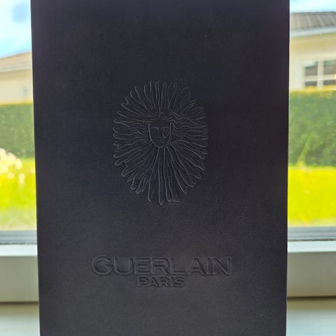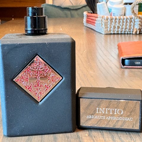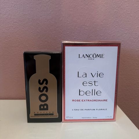 Parfyme i svart flaske med etikett. Produktet er ment for bruk som duft.