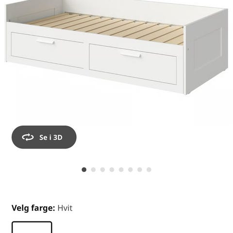 IKEA uttrekkbar seng i hvit farge med to oppbevaringsskuffer under sengen. Laget av tremateriale med lamellbunn. Passer for barn og kan trekkes ut for ekstra soveplass.