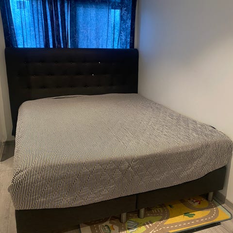 Seng selges uten ben og uten madrass, i god stand brukt ett år 160x200. Her ingen flekker må hentes på Skjetten