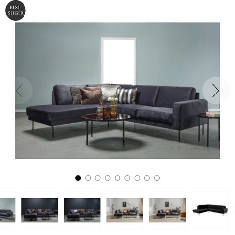 Shibuya hjørnesofa i god stand selges grunnet endrede behov. Stoffet har mørkt stoff i velur. Har også en puff i lignende farge som kan medfølge. Nypris sofa er 29.999. Førstemann til mølla!