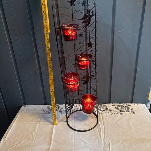Fin liten rød oval telysholder, selges!