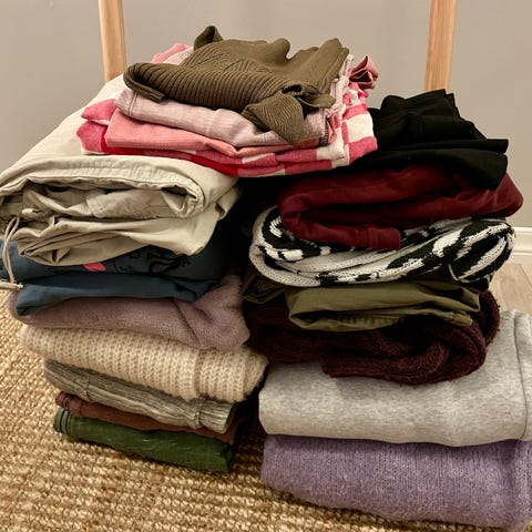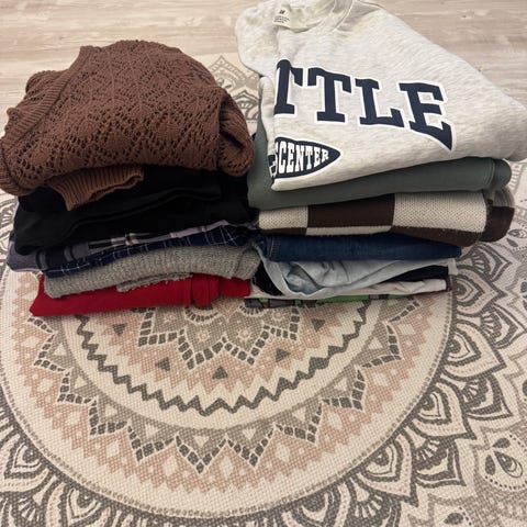 Kjempefin klespakke med 19 plagg selges 🌸 Pakken inneholder jeans/bukser, gensere, nattøy, kjoler, ull/superundertøy. Noen er plaggene er i xs/s, men er tilsvarende 158-164 i størrelse.