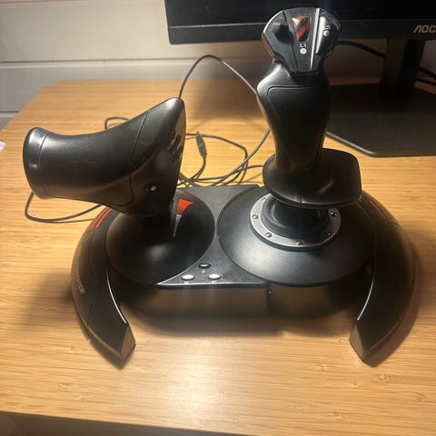 Selger et Thrustmaster T.16000M FCS HOTAS-sett, perfekt for fly- og romsimulatorer som Microsoft Flight Simulator, DCS, Elite Dangerous og Star Citizen.