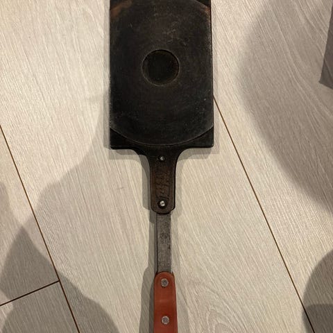 Godt gammeldags og tungt krumkakejern.
