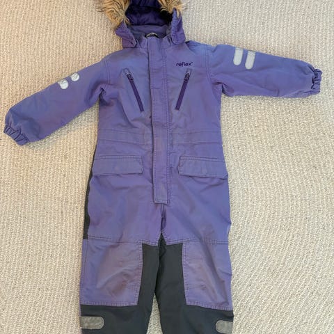Vinterdress med vannsøyle på 10000mm. Lite hull ved beinsøm på et bein (lappebit følger med, men ikke merket lekkasje), ellers ubetydelig småslitasje i stoff på glidelåsstolpe