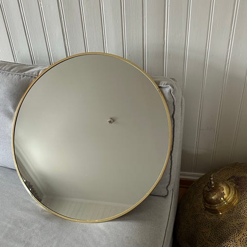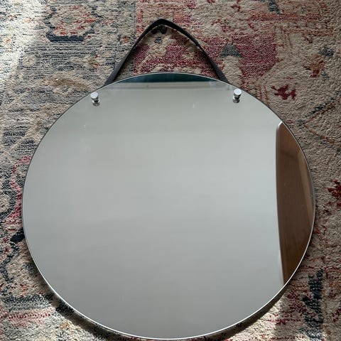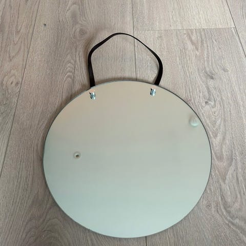 Lite rundt speil med skinnreime