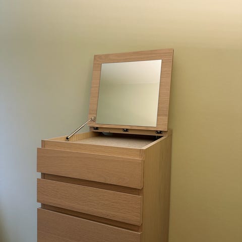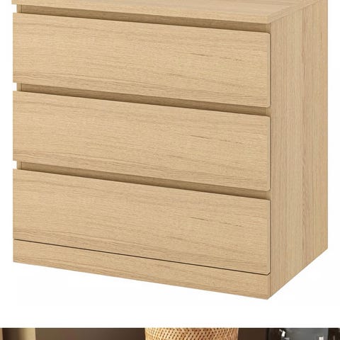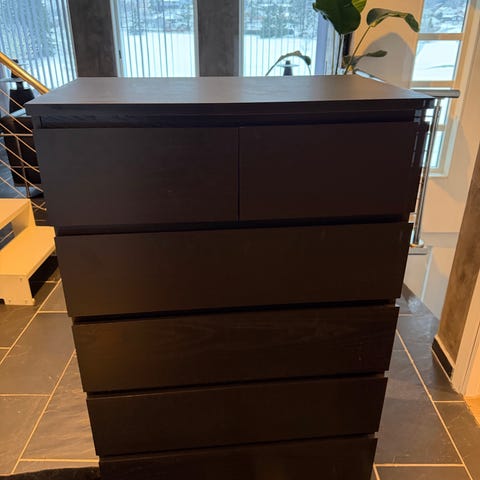 MALM kommode i eik selges. Godt brukt. Noe bruksmerker som vist på bildene (dørskuffen og i den ene skuffen).