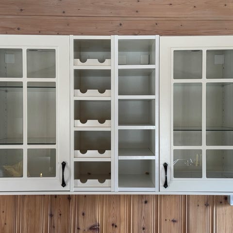 Vitrineskapet kan deles slik at det blir to deler ved frakt.