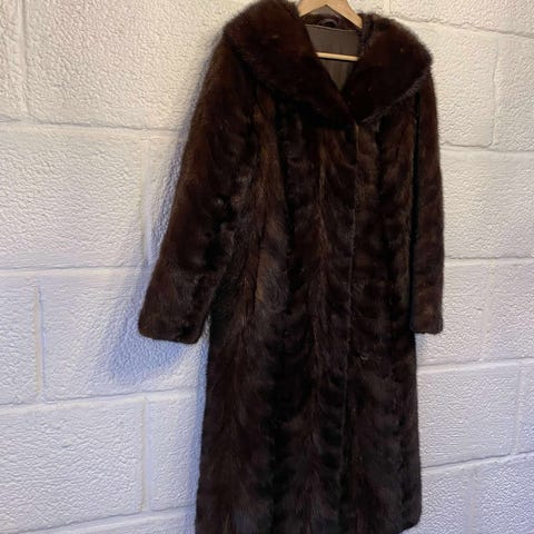 Nydelig svart perser kåpe med brun mink krage.Str. S/M.Brukt kun en gang.Kan sendes mot frakt.