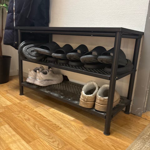 En praktisk og elegant løsning for garderobeoppbevaring – MACKAPÄR fra IKEA med et minimalistisk design. Den har en solid hvitlakkert metallramme og en nettinghylle som gir god luftsirkulasjon og enkel tilgang til oppbevarte gjenstander. Praktisk for oppheng av klær eller tilbehør, og passer perfekt i gang eller på hjemmekontor. Produktet er i svært god stand og selges på grunn av flytting. Hentes på adressen Sponhoggbakken, Lilleaker.