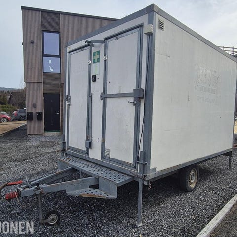Mannskapsbrakke / mannskapsvogn med bremser selgest. Vogna er til min oppfatning tett, isolert og strøm som kobles opp mot stikkkontakt