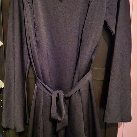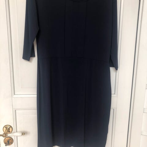 Veldig fin kjole med A form og lommer i siden. Det er strikk nederst på armene og skjulte knapper øverst foran. Veldig behagelig å ha på seg. God på str.