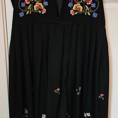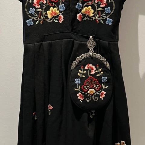 Jeg selger min kjære bunad videre da den bare henger i skapet. Den er tilpasset min høyde 160 cm. Livvidden er 94 cm. Bunaden kan ikke sys mer ut, men sikkert inn. Den har noen år på nakken, men er lite brukt og i fint skikk.